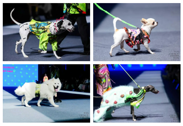 在本次时装周上,由时尚设计学院联合知名品牌打造的宠物荧光服饰大秀成为现场焦点。该系列以“潮流共享,陪伴时尚”为理念,将大熊猫、十二生肖等元素融入荧光科技与艺术设计融合,采用环保材质与定制灯光技术,在实现宠物时装功能性与艺术性统一的同时,有效提升了订单咨询转化率,生动诠释了“产学研用”协同模式的实践成效。