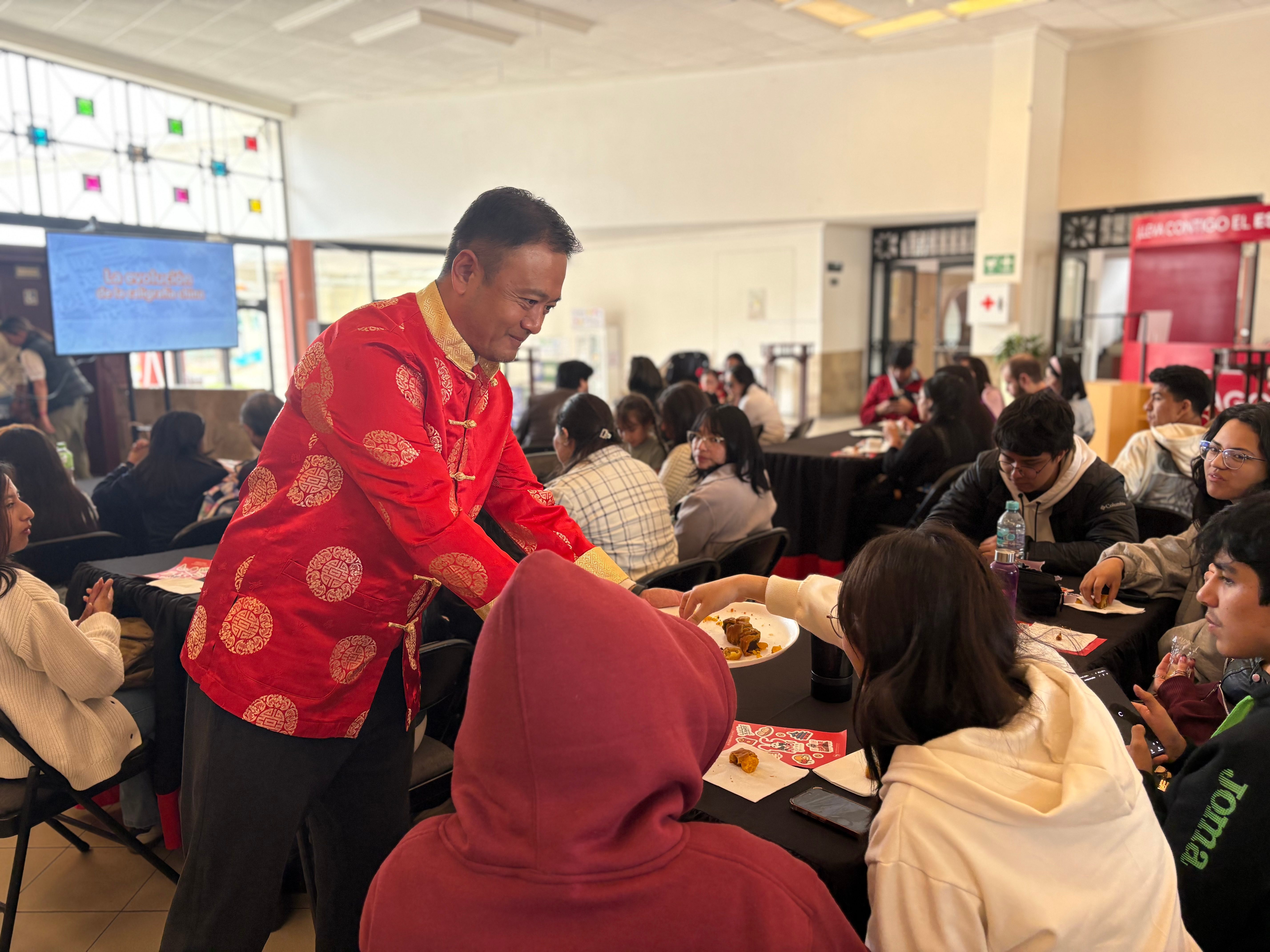 在完成语言教学任务的同时,张健老师积极履行文化使者职责,主动参与多项文化交流活动。他先后参加了孔子学院组织的“中秋节”“孔子学院日”等品牌活动,并应邀参加了中国驻厄瓜多尔大使馆举办的国庆招待会。通过生动讲述中国故事、展示中华优秀传统文化,有效增进了当地民众对中华文化的了解与认同,为促进中厄文明互鉴、深化两国友谊作出积极贡献。
