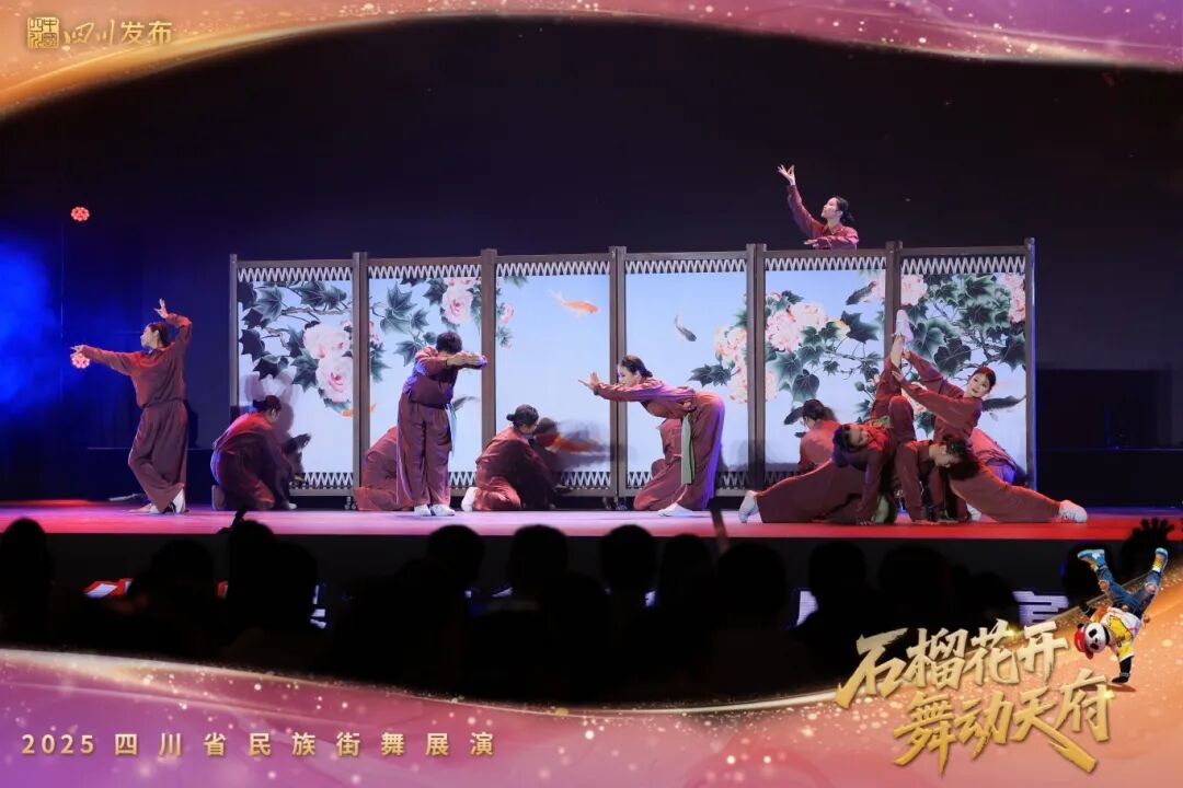 现场座无虚席,观众的欢呼声与音乐节奏交织,不少观众举起手机闪光灯,为舞台铺就一片“星光海洋”,13个由四川各地精心选送的节目轮番上演,展示出民族文化与街舞碰撞的独特魅力。整台节目,民族元素成为最靓的风景!从《归》中蒙古少女的生命历程,到《说唱俑》让千年文物焕发新声;从《白羽毛飘过的山谷》实现白马藏族文化的现代表达,到《在查瓦绒共生》描绘汉藏等民族共居的和谐画卷。
