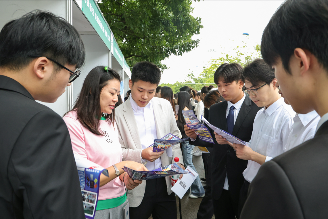 仪式现场,来自高校院所、赴川博士服务团、企事业单位、金融机构、行业协会的200余名专家人才汇聚一堂,集聚创新智慧,共绘发展新篇。中创新航科技(四川)有限公司、四川杉杉新材料有限公司、通威太阳能(眉山)有限公司、成都比亚迪电子有限公司、农夫山泉股份有限公司等来自全国各地的近50家企事业单位走进校园,为四川大学锦江学院应届毕业生提供涵盖新能源、新材料、高端装备、人工智能、食品等多个行业领域的近1000个就业岗位。