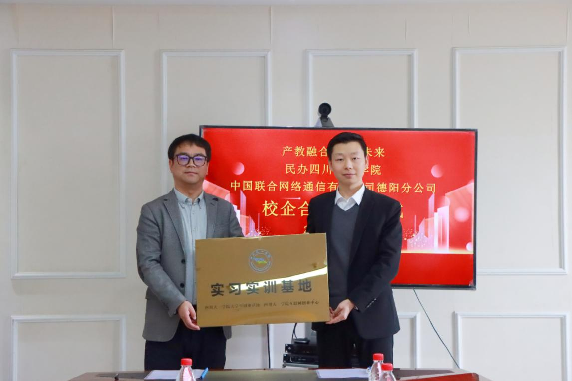 近日,四川天一学院与中国联通德阳分公司举行校企合作授牌仪式。副校长廖财国、中国联通德阳分公司副总经理和凯旋出席,学校未来数字创意产业学院、中国联通绵竹分公司负责人及学校有关专业老师、企业代表参加仪式。