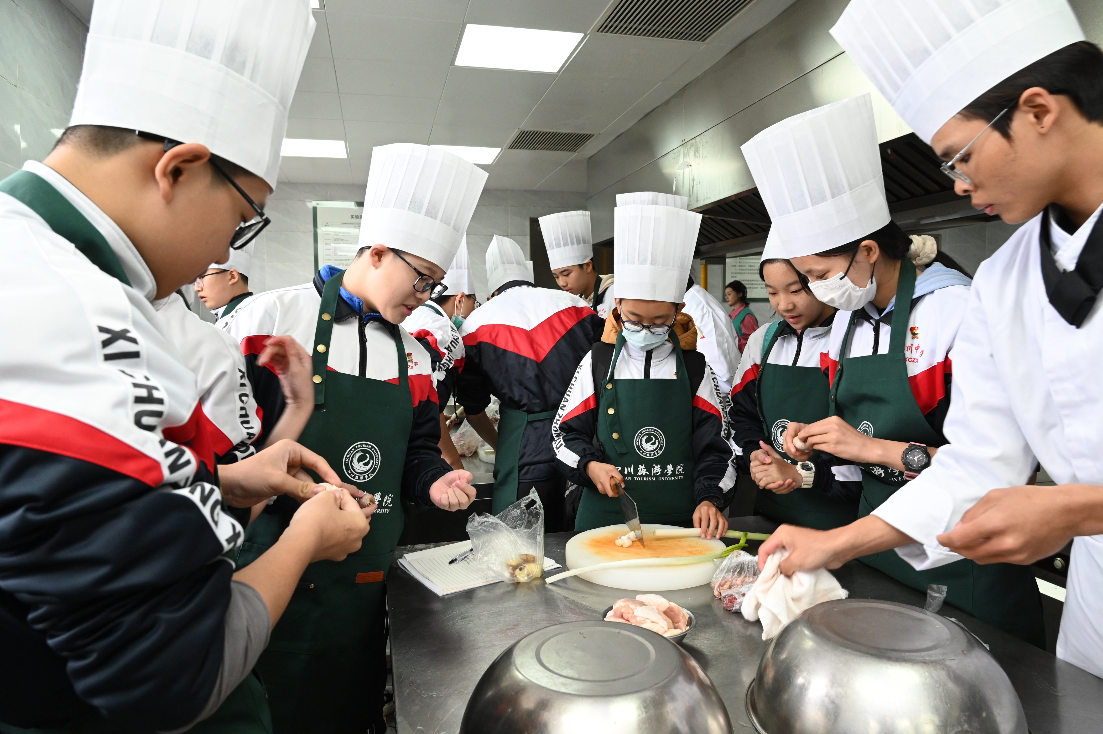 11月21日,成都西川中学师生走进四川旅游学院烹饪与食品实训楼“第一厨”,开展“蜀娃探蜀味·匠道育知行”主题食育研学活动,将巴蜀美食文化、劳动教育与生活实践相结合,让学生在沉浸式体验中探寻饮食文化根源,锤炼劳动品格。