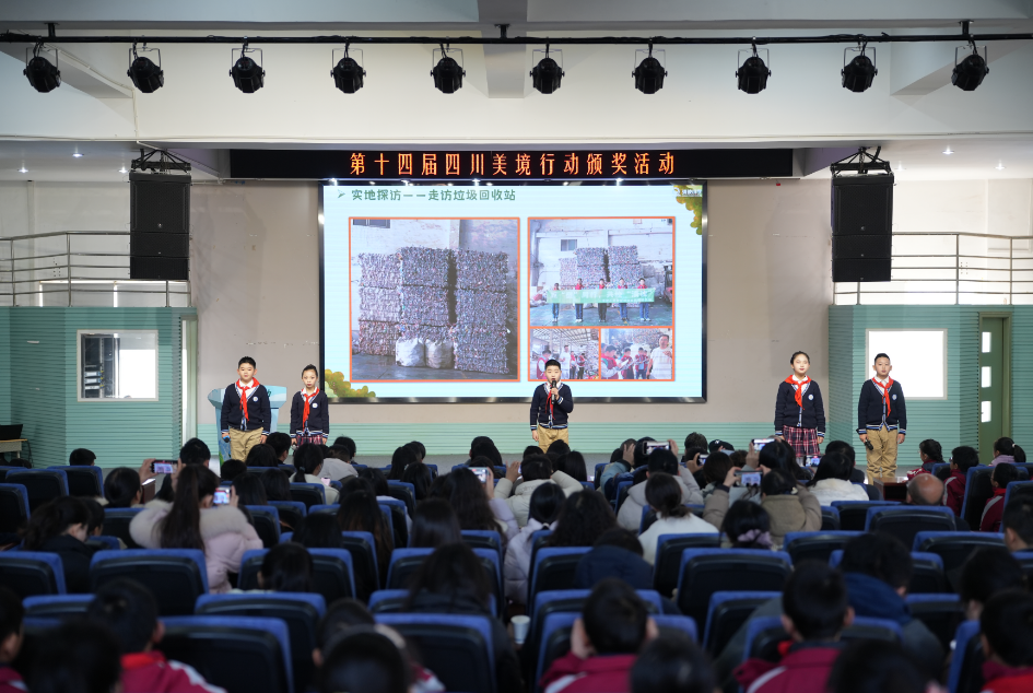 2026年1月9日,第十四届四川美境行动颁奖活动在成都市清波小学校举行。本次活动由四川省生态环境宣传教育中心与四川省教育科学研究院联合举办,壳牌(中国)有限公司支持。来自成都、泸州、广元、德阳、遂宁、广安、凉山等18个市(州)获奖师生、学校、组织单位代表,以及学校部分师生等300余人参加活动。